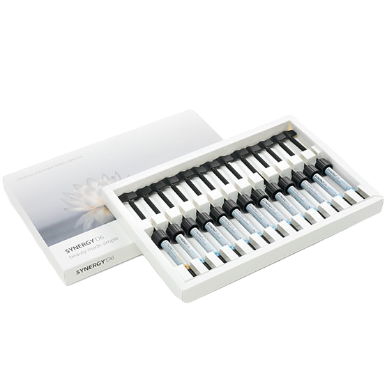 O SYNERGY D6 é um compósito nano-híbrido para a prática diária da odontologia. Este compósito universal centra-se totalmente na simplificação da seleção de tonalidades sem negligenciar os aspetos estéticos.